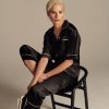 The model on the photo wears size S of the upper part and size XS of the lower part of the set. She is 178cm tall, and measures 84cm around chest, 62cm around waist and 89cm around hips.