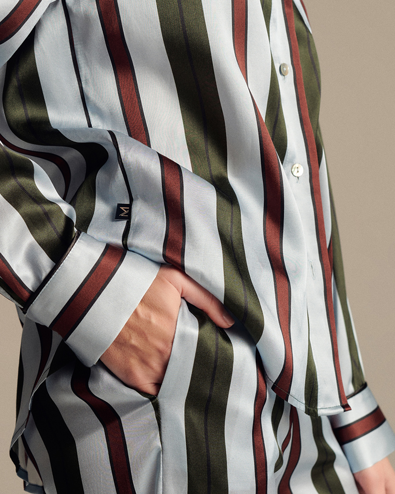 Svi MAIA proizvodi napravljeni su po principu slow fashion: od nakvalitetnije, 100% svile, koja je ručno šivena tako da savršeno prati liniju vašeg tela. Kada su donji delovi u pitanju, samo radi lepšeg držanja na kukovima, dodat je mali procenat elastina.