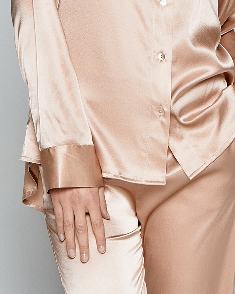 Svi MAIA proizvodi napravljeni su po principu slow fashion: od nakvalitetnije, 100% svile, koja je ručno šivena tako da savršeno prati liniju vašeg tela. Kada su donji delovi u pitanju, samo radi lepšeg držanja na kukovima, dodat je mali procenat elastina.