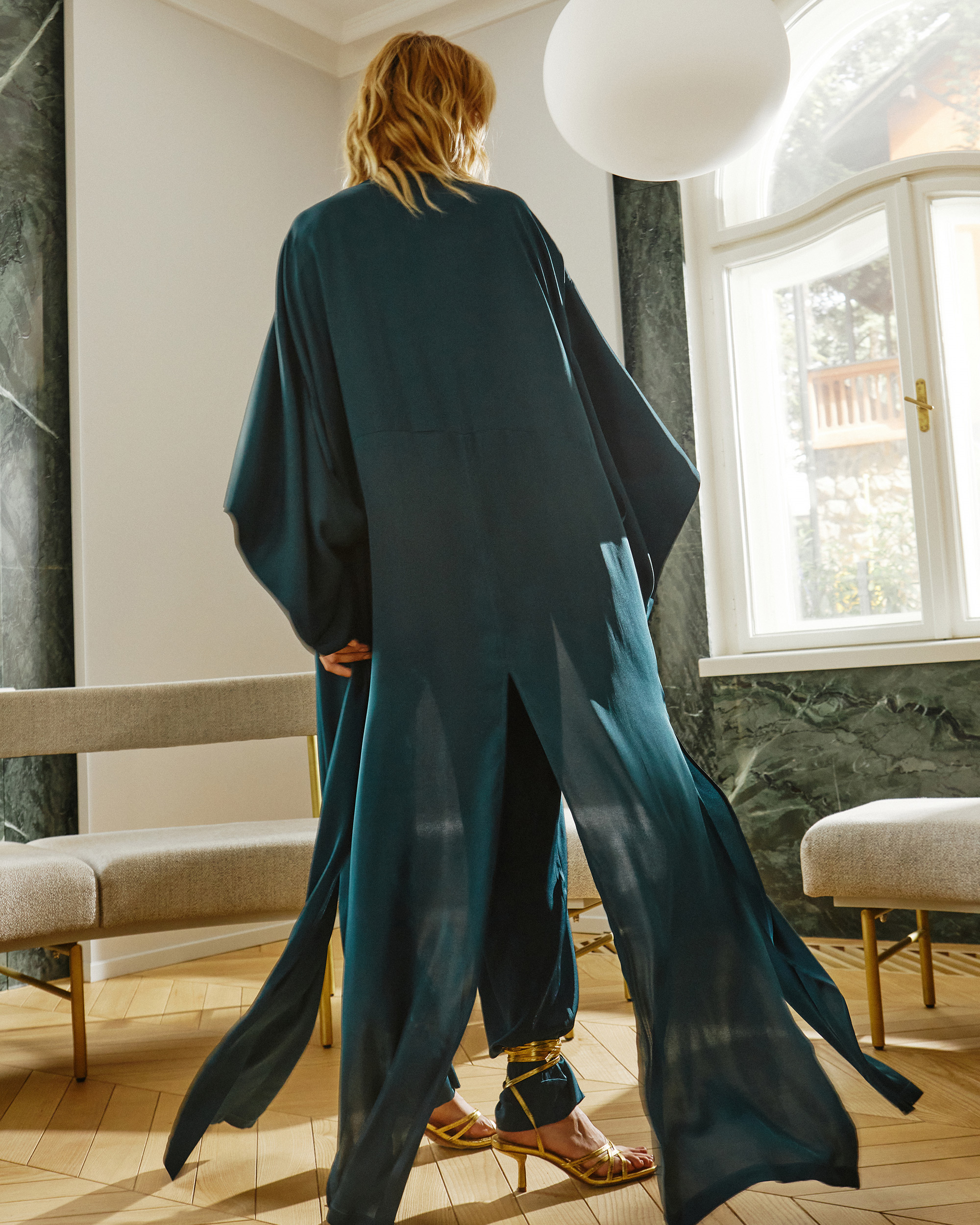 Svi MAIA proizvodi napravljeni su po principu slow fashion: od nakvalitetnije, 100% svile, koja je ručno šivena tako da savršeno prati liniju vašeg tela. Kada su donji delovi u pitanju, samo radi lepšeg držanja na kukovima, dodat je mali procenat elastina.
