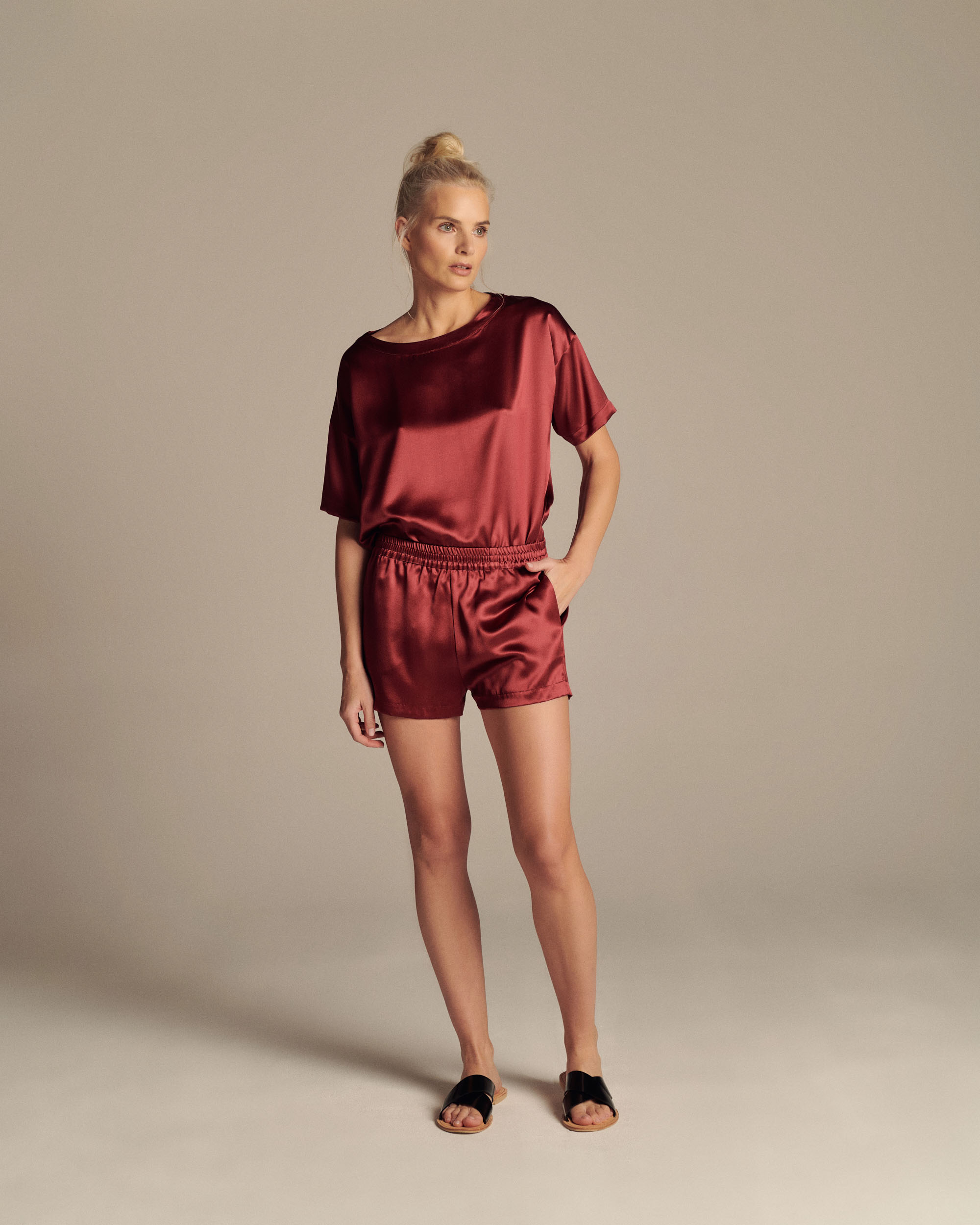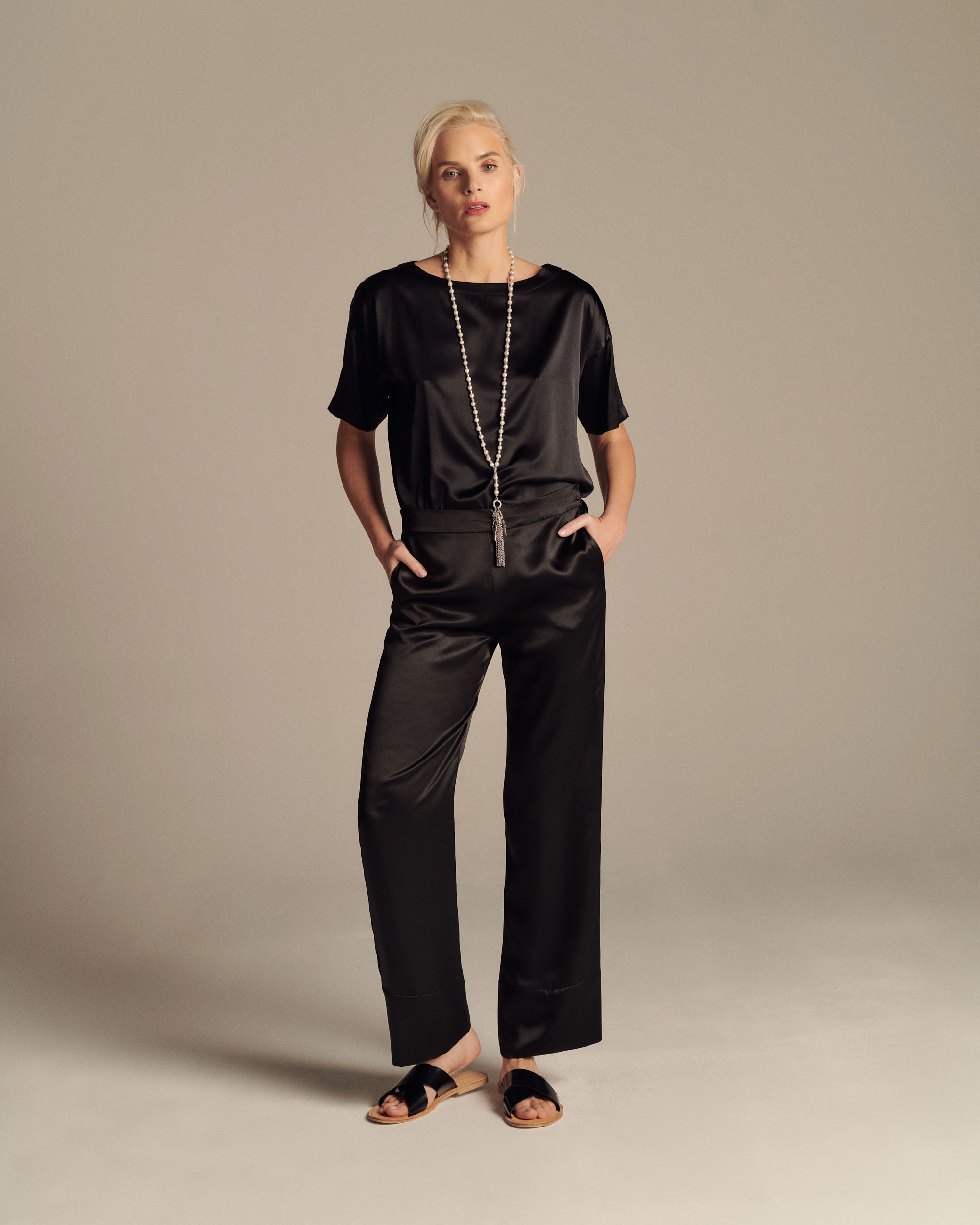 Svi MAIA proizvodi napravljeni su po principu slow fashion: od nakvalitetnije, 100% svile, koja je ručno šivena tako da savršeno prati liniju vašeg tela. Kada su donji delovi u pitanju, samo radi lepšeg držanja na kukovima, dodat je mali procenat elastina.